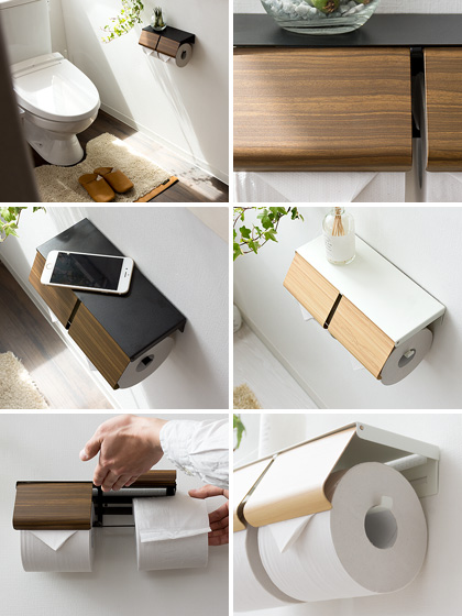 トイレットペーパーホルダー 2連 ペーパーホルダー ダブル 北欧 スチール製 メンズライク シンプル 白 ホワイト 茶 ブラウン 飾り棚 トイレ 棚 トイレットペーパーホルダー TEER〔ティール〕
