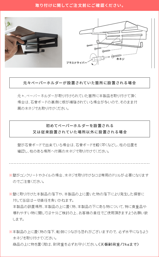 - 取り付けも、ふたが邪魔して取り付けしずらく、使いがっても、紙切るギザギザがないし、紙押さえ付けてないから、手でちぎる感じだし…デザイン見た目だけの品です