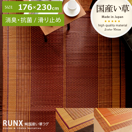 い草 ラグ ラグマット カーペット 国産 ふっくら マット 滑り止め リビング おしゃれ モダン シンプル 和風 洋室 アジアン 純国産い草ラグ RUNX〔ランクス〕 176×230cmタイプ ワイン ベージュ