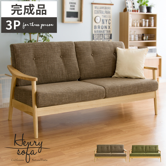 ソファー ソファ 3人掛け カウチソファ 北欧 西海岸 カフェ ナチュラル シンプル 3Pソファ 人気 布製 ファブリック 木製 アッシュ 天然木 henrysofa(ヘンリーソファ) 3P