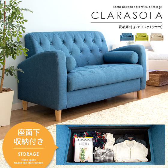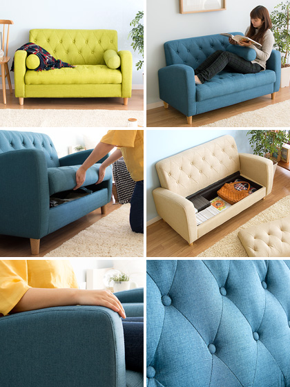 ソファー 収納 ソファ 収納付きソファ 北欧 ソファ 2人掛け コンパクト ローソファー 収納ソファ 二人掛け キルティング シンプル おしゃれ おすすめ グリーン 収納 かわいい クッション付き 収納付きソファ Clara〔クララ〕2P