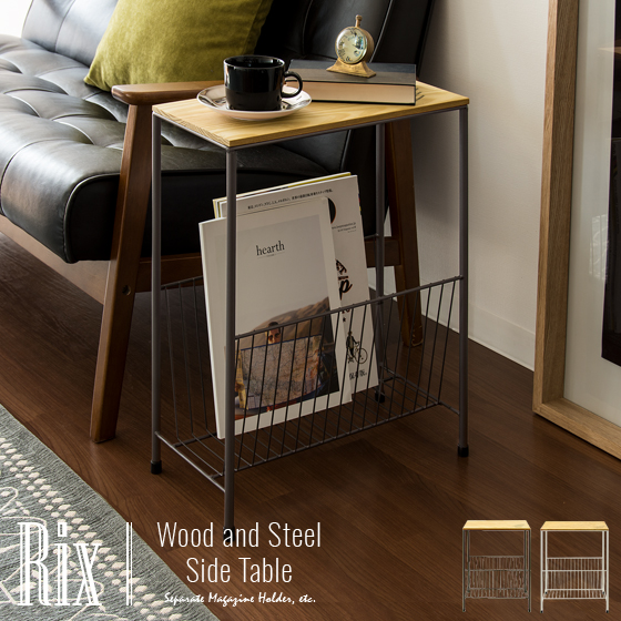 サイドテーブル おしゃれ スリム ベットサイドテーブル ベッド ソファー テーブル ナイトテーブル 木製 北欧 西海岸 シンプル モダン ヴィンテージ 収納付き マガジンラック 本収納 雑誌収納 ラック ソファサイドテーブル Rix〔リックス〕