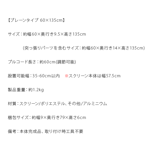 ロールスクリーン つっぱり ロールカーテン 間仕切り ブラインド カーテン 目隠し 部屋 仕切り 60 135 無段階調整 おしゃれ シンプル 突っ張り つっぱり式ロールスクリーン Brighter(ブライター)プレーンタイプ 60×135cm