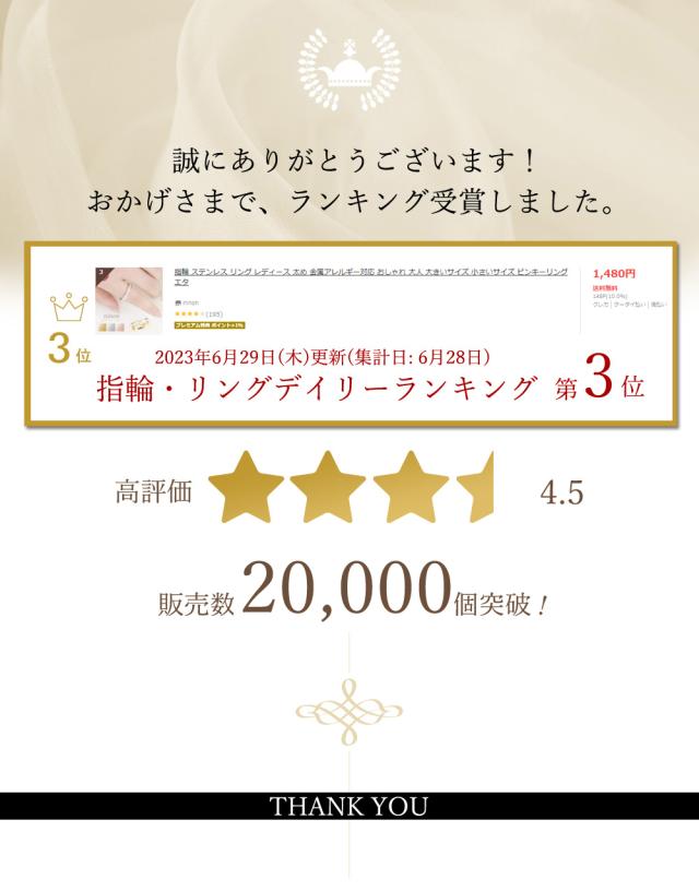 - 本当は19号が欲しかったんですが無かったんで20号にしました。キラキラで気に入りました。19号のシルバーや、ピンクゴールドがあれば、もっと嬉しかったです。