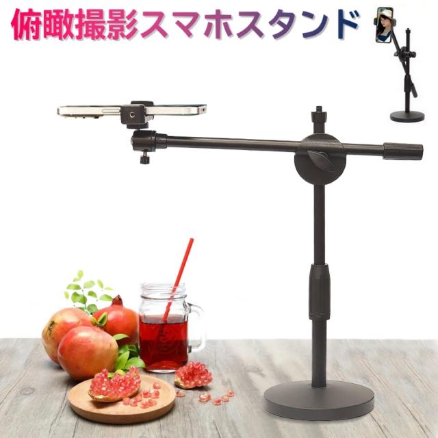 俯瞰撮影 スマホスタンド 三脚 俯瞰 撮影 俯瞰 真上から撮影 映える テーブルフォト 実況用 手元撮影 視点 料理動画 真俯瞰 俯瞰フォト ライブ配信 DIY 商品撮影 手作り 卓上スマホスタンド 自撮り撮影 手振れ防止 スマホホルダー
