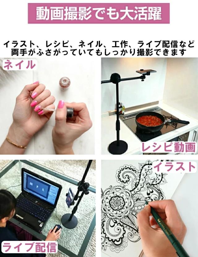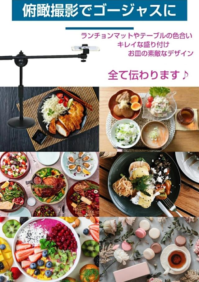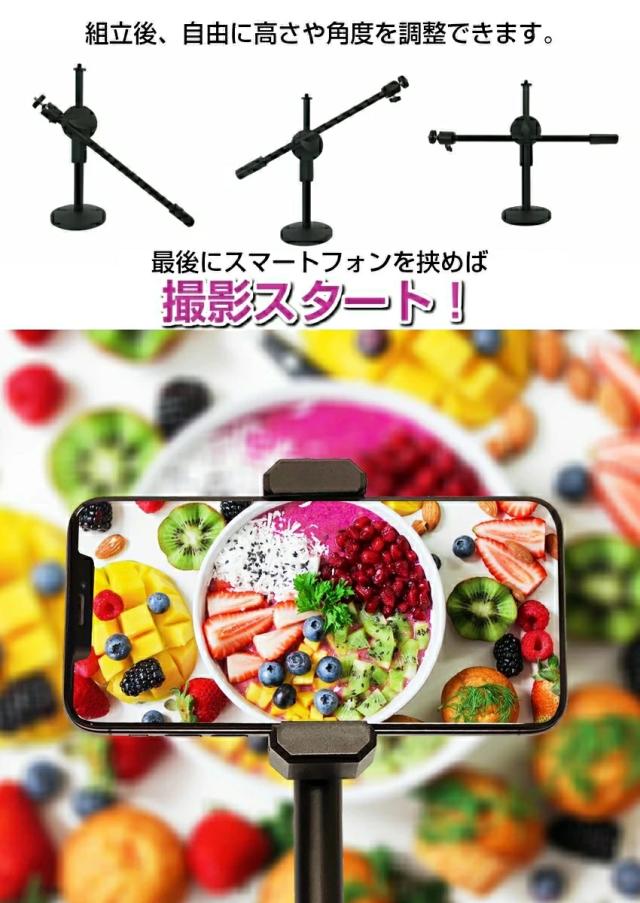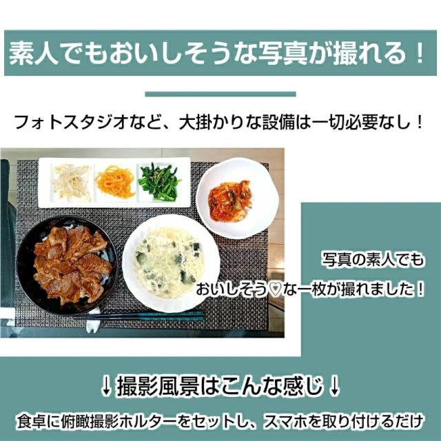 真俯瞰撮影 スマホスタンド 真上から撮影 映えるテーブルフォト 俯瞰フォト 視点 料理動画 お絵書き 書道 編み物 DIY 商品撮影 手作り 自撮り撮影 手振れ防止 スマホホルダー 三脚 実況用 模型作り 実況用 YouTube インスタ ツイッター