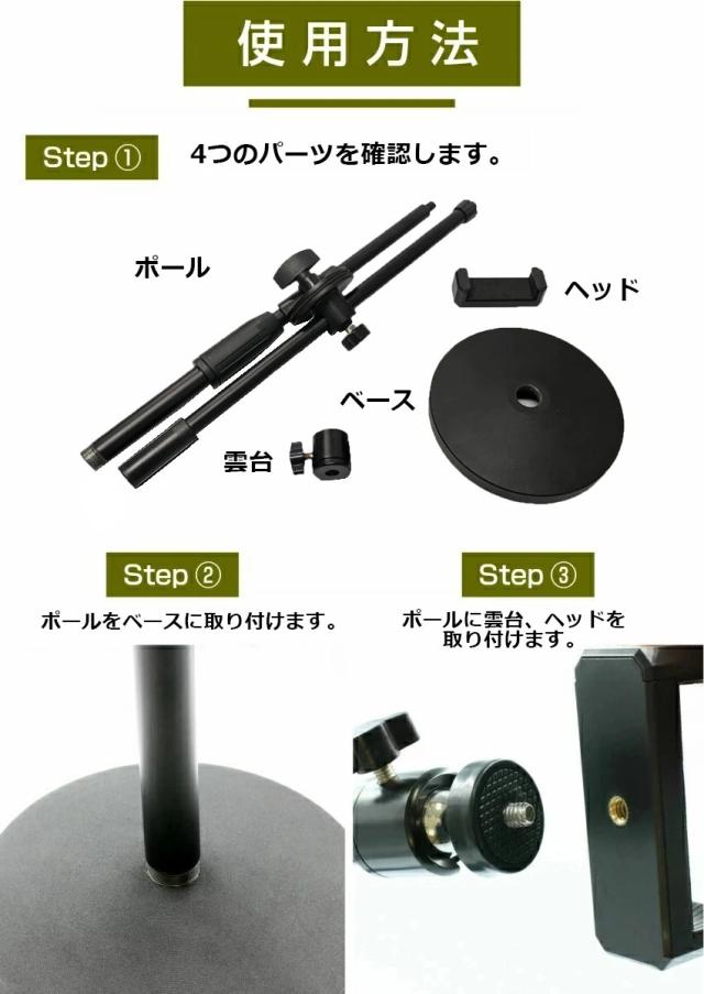 - 安定感抜群! 簡単な組み立て説明書だけで不安でしたが、 それ以上に簡単に組み立て終わり納得でした(*´ 艸`) ぐらつきもなく、いろんな角度で撮影可能でした。 お値段もそれほど高くなく、嬉しい! 初心...