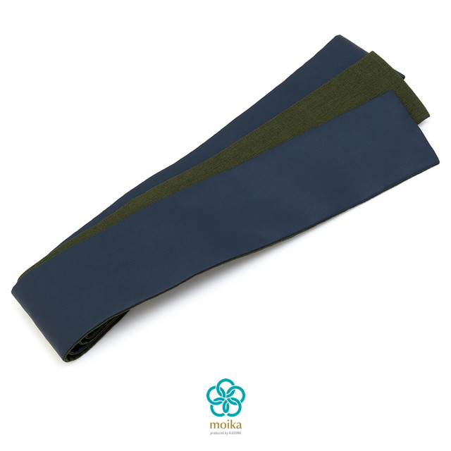 角帯 メンズ ブランド moika(モイカ) 紺 ネイビー 深緑 グリーン 無地 単色 シンプル 皮 レザー リバーシブル 男性用 細帯 浴衣帯 仕立て上がり 日本製