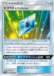 収録:スカイレジェンド コレクションナンバー:045/054 種類:トレーナーズ タイプ:グッズ カード名:ヒコウZエアスラッシュ レアリティ:U