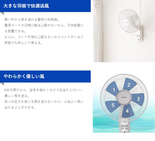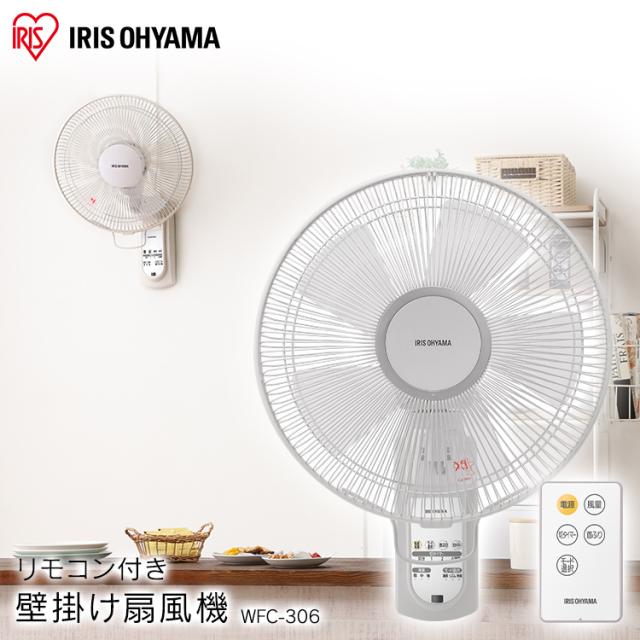 扇風機 壁掛け扇風機 アイリスオーヤマ * WFC-306 大型 30cm 風量3段階 空気循環 左右自動首振り 上下角度調整 リズム風 快眠モード カンタン設置 リモコン付 切タイマー 熱中症対策 狭いスペースにも設置 キッチン 寝室 子供部屋 ペット