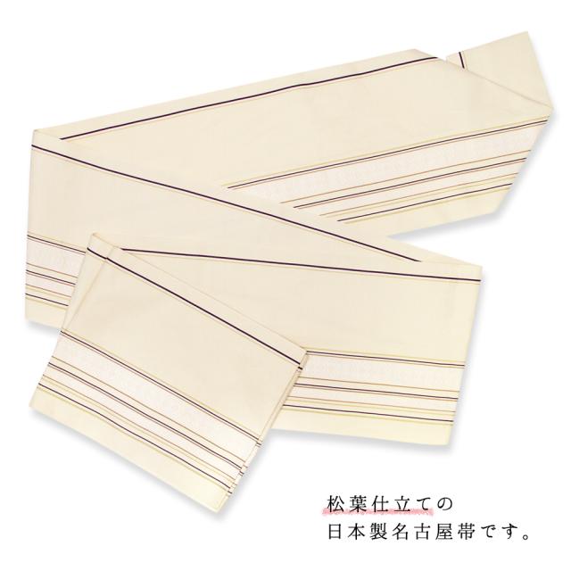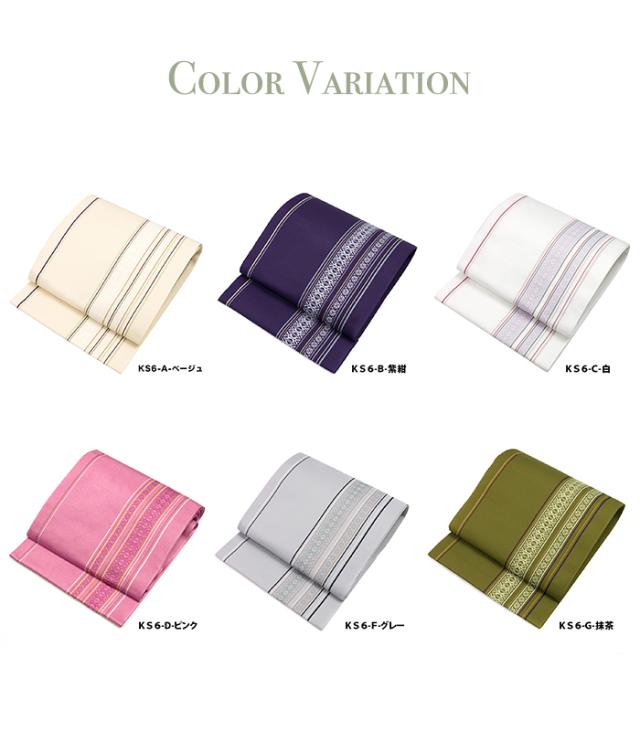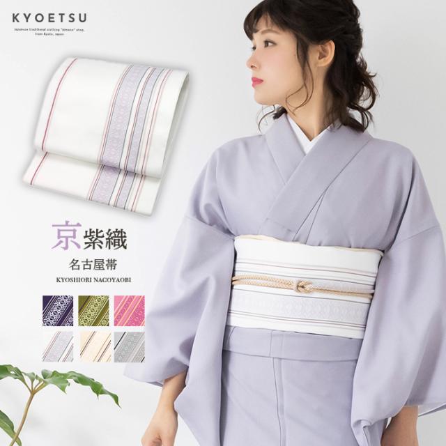 (名古屋帯 KS6) 日本製 八寸名古屋帯 京紫織 ベージュ/白/紫/ピンク/グレー 名古屋帯 洗える 上品 ストライプ 献上柄 仕立て上がり