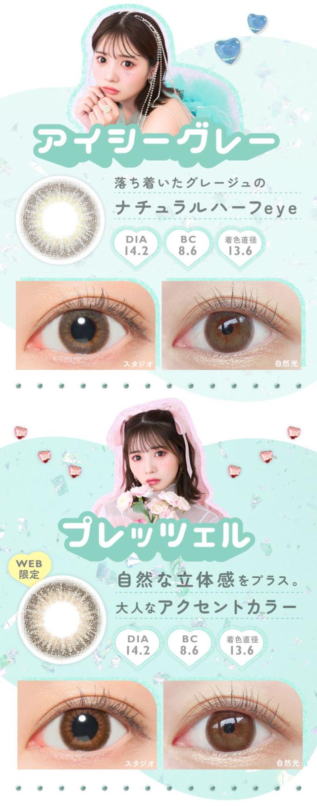 ・DIA(mm)14.2:プレッツェル/アイシーグレー/チェルシー/ジェリーモカ/ナチュラルブラック/ナチュラルアーモンド/ハーフグレー