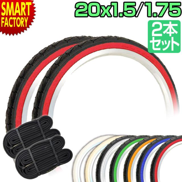 自転車 タイヤ 20インチ タイヤ チューブ 2本セット 20x1.50 20x1.75 カラータイヤ SR-076 スリック タイヤ シンコー SHINKO 自転車タイヤ ペア巻き 折りたたみ自転車 ミニベロ 小径車 20インチタイヤ