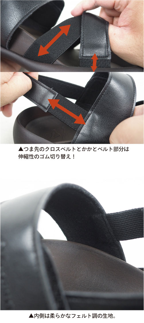 (特徴)ストラップ クロス ゴムベルト クロスベルト 踵 足首 疲れない 履きやすい 歩きやすい 痛くない