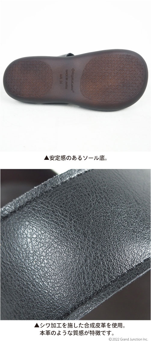 カジュアルなデザインながらも上品さを演出し、本革のような質感が特徴の合成皮革を採用しています。