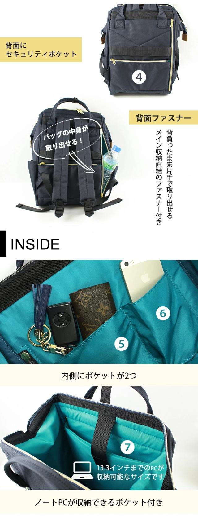 アネロ リュックサック anello リュック レディース 大容量 バックパック デイパック キャンバス 口金 マザーズバッグ 背面ファスナー おしゃれ かわいい 大人 通学 通勤 a4 シンプル【b0193r】