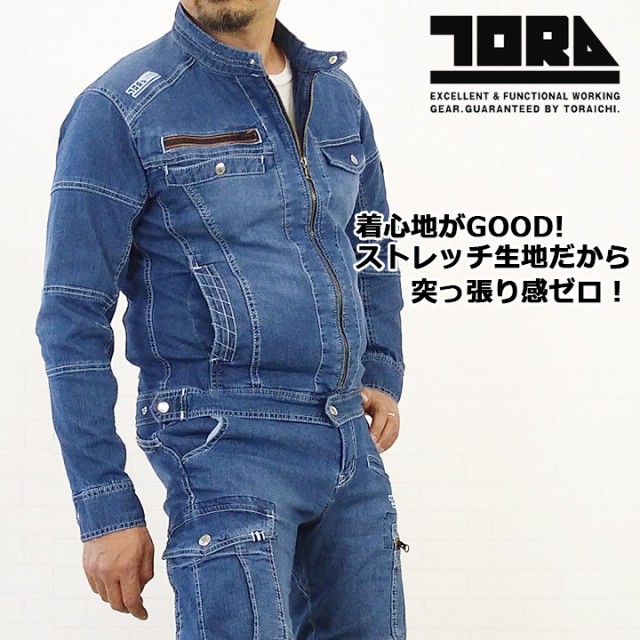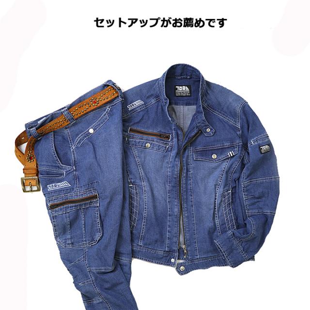 寅壱 デニムライダースジャケット 8970-554 春夏用素材 デニムジャケット 8970シリーズ ジャンパー ストレッチ 作業服 作業着 トライチ
