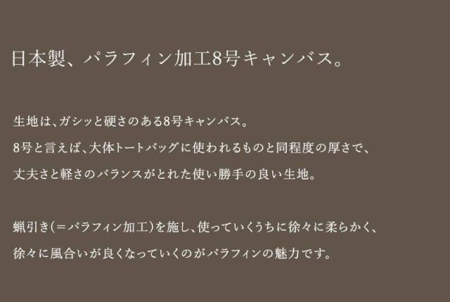 ・「10年使う」が前提の、日本製パラフィン8号キャンバス。