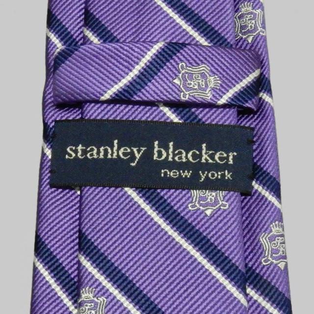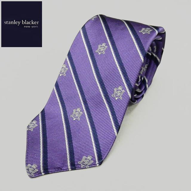 stanley blacker(スタンリー ブラッカー) スリムタイ 裏地なし 日本製 紫縞/クレスト(紋章) シルク100% メール便可