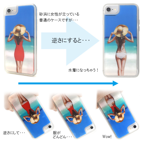 ケースを逆さにするとキレイなお姉さんの服がどんどん脱げて水着になっちゃう!パンチのあるジョークの効いたケースです。会話のきっかけにどうですか?! 衝撃やキズなどからiPhoneを守るのは もちろん、カメラ、イヤホンや各種ボタンなどをケースに入れたまま操作可能です。 背面部分は固いPC素材、側面は柔らかいTPU素材なのでスマホの着脱も簡単です。また、ストラップホール付きです。