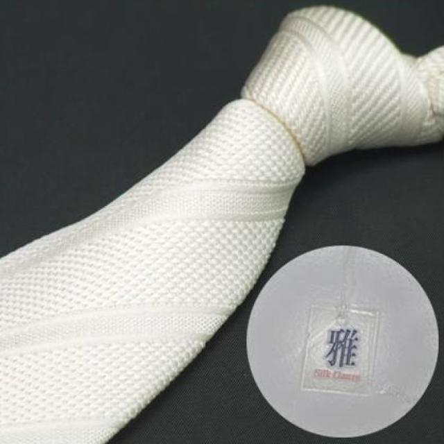 ▼フレスコタイ▼白系生成り▼シルク100%▼日本製▼結婚式▼白縞▼フォーマルネクタイ▼メール便可