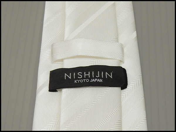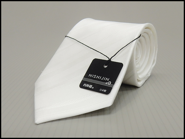 西陣織 フォーマルネクタイ◇白◇ストライプ◆シルク100%◇日本製◆礼装◆結婚式・披露宴 メール便可