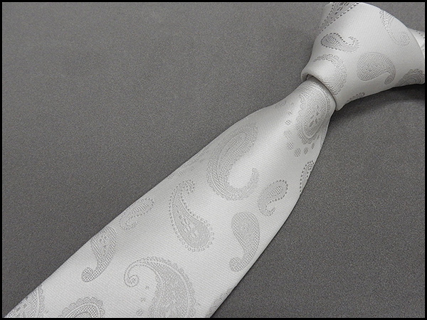 西陣織 フォーマルネクタイ チーフ付◇銀◇ペイズリー◆シルク100%◇日本製◆礼装◆結婚式・披露宴 ネクタイ メール便可 NJC15