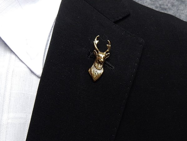ラペルピン メンズ 鹿 ハンティングトロフィ ブローチ メンズ用ブローチ ピンブローチ メール便可 ACC21-2013