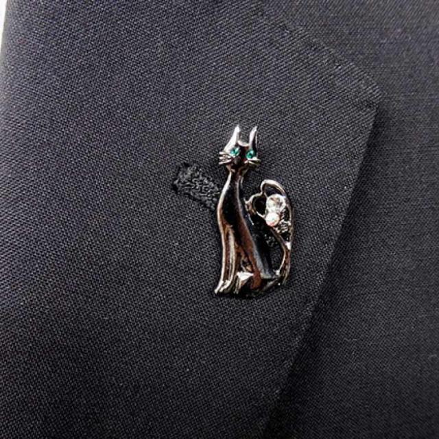 ラペルピン スワロフスキー ネコ(スマート) ガンメタ ブローチ メール便可