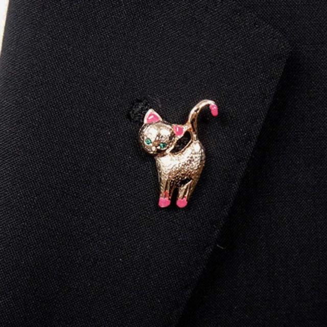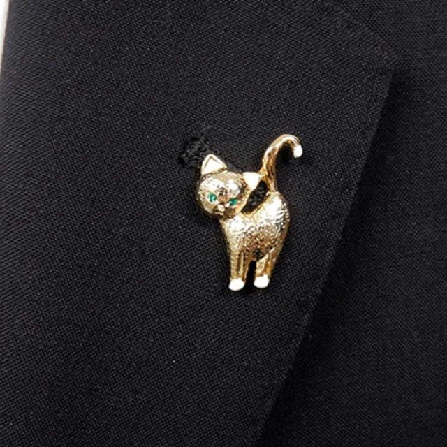 ラペルピン スワロフスキー ネコ(背伸び) ゴールド ブローチ メール便可