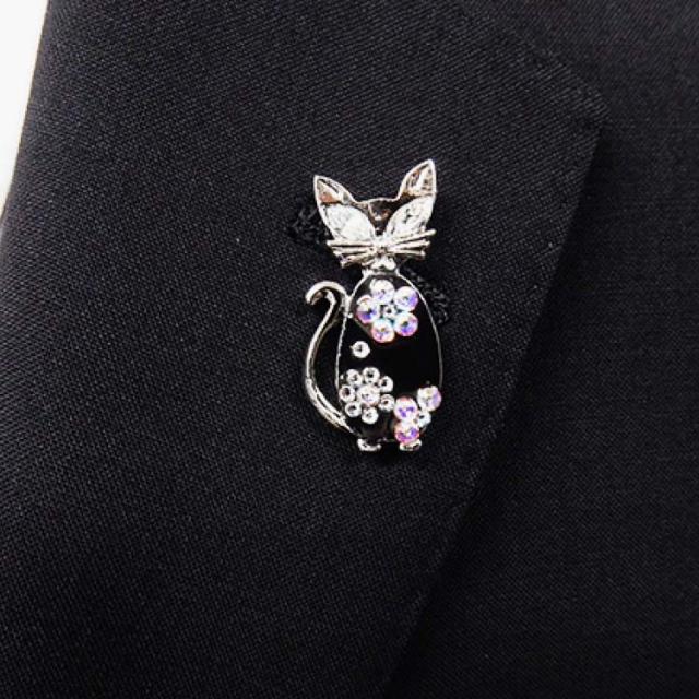 ラペルピン メンズ スワロフスキー ネコ 座り猫 シルバー&ガンメタ ブローチ メール便可