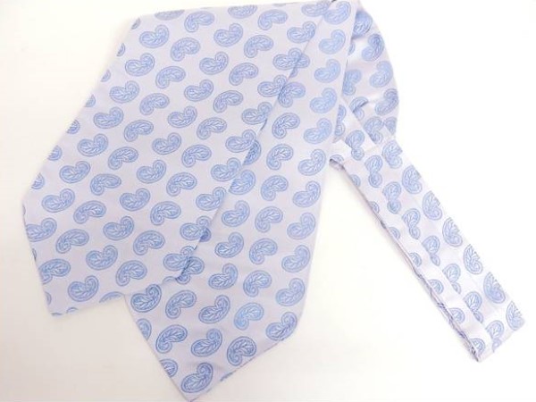 アスコットタイ メンズ シルク100% シルバー×ブルー ジャガード織ペイズリー柄 メンズスカーフ メール便可 act22