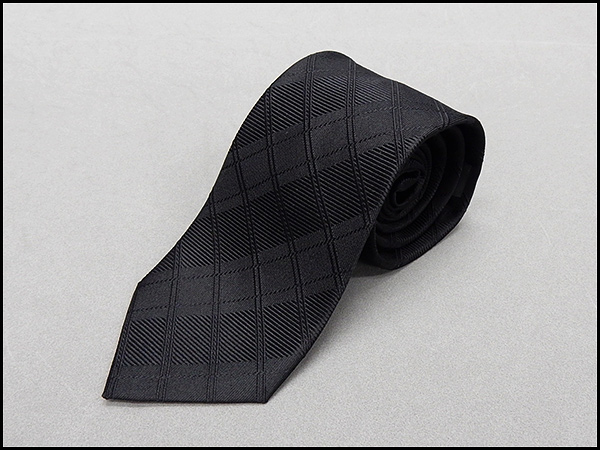 西陣織 ナローフォーマルタイ◇黒◇チェック◆シルク100%◇日本製◆礼装◆告別式・葬式 細ネクタイメール便可 NJN22-BK