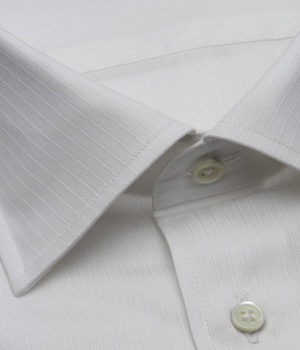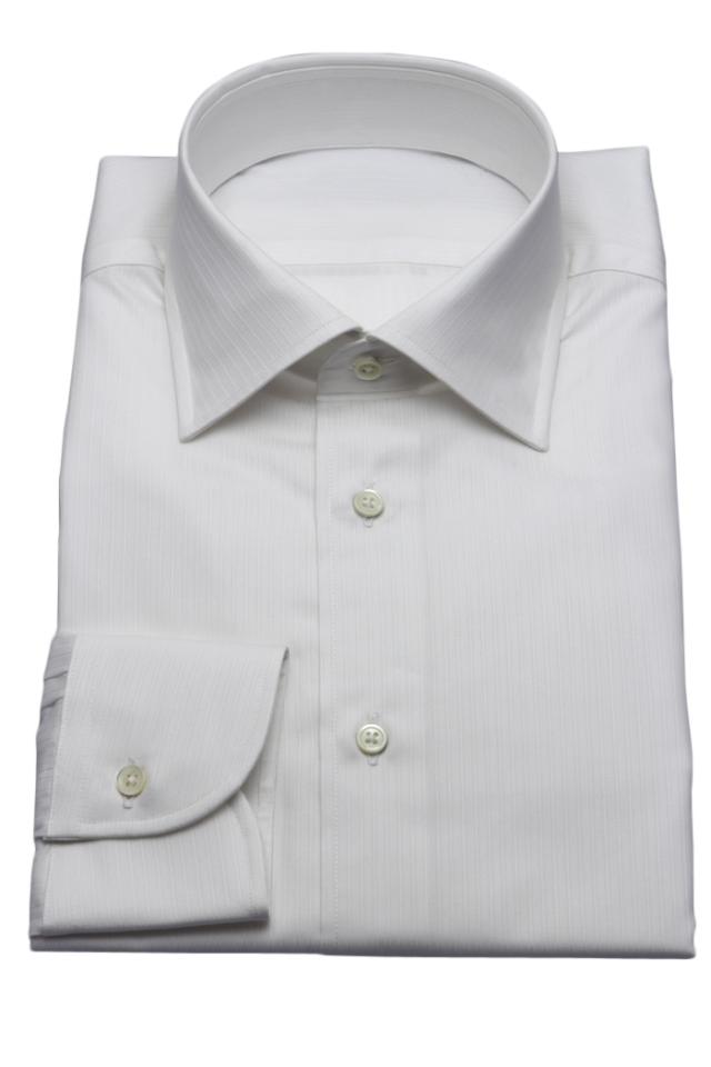 ワイシャツ【SHIRTSBAR】日本製 綿100% 白 70番単糸 ストライプドビー柄 セミワイドカラー ドレスシャツ スリム