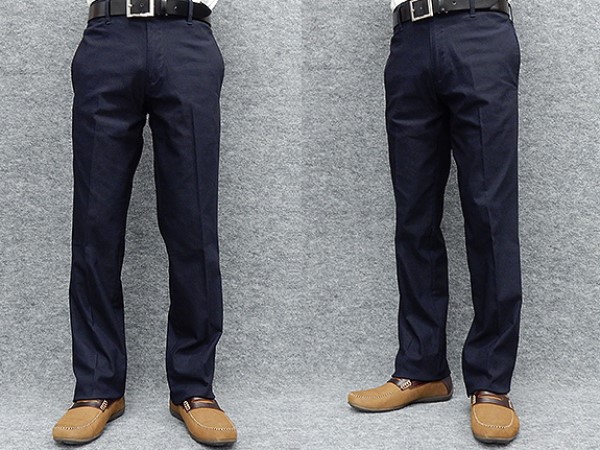 ★スリムノータック のびのび素材+ウエスト スラックス 春夏 濃紺 無地 ウォッシャブル ビジカジパンツ 綿パン 76cm-120cm