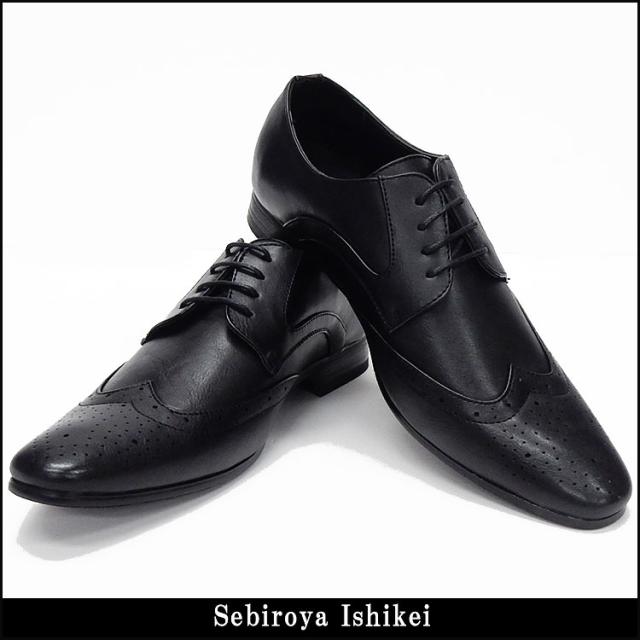 ビジネスシューズ 黒 ウイングチップ 紳士靴 メンズ 合成皮革 革靴/SHM395