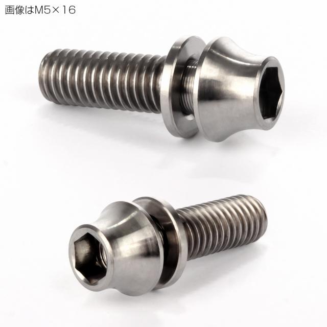 チタンボルト M5×16mm P0.8 ワッシャー組込 カーブ テーパーヘッド キャップボルト 平座金付き 六角穴付ボルト シルバー JA289