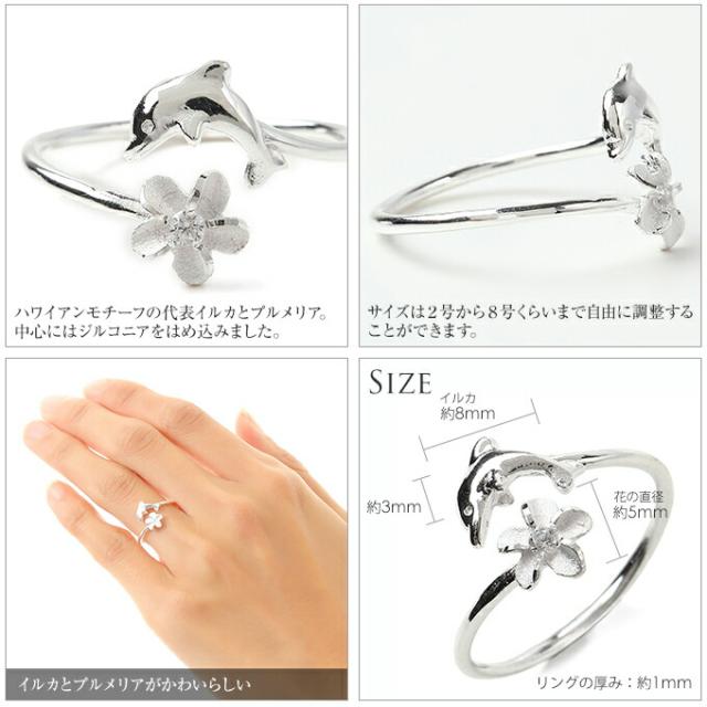 ハワイアンジュエリー リング 指輪 レディース シルバー925 イルカ プルメリア ピンキーリング 2号 8号シルバーリング 誕生日 女性 彼女 妻 記念日 プレゼント ギフト ハワイアンリング ピンキー トゥー Hawaiian jewelry 入学祝 入社祝 卒業祝