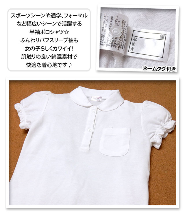 【送料無料】子供服 女の子 ポロシャツ 半袖 丸衿 綿混 女児 キッズ 100cm 110cm 120cm 130cm【メール便対応】