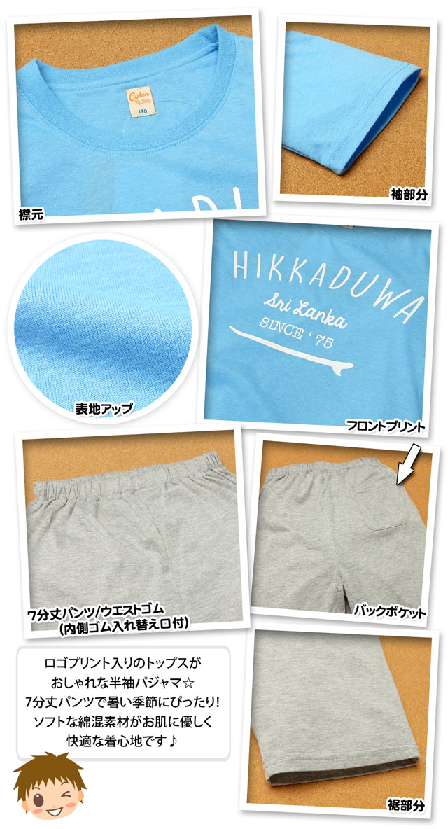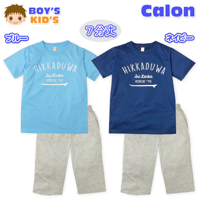 【送料無料】子供服 男の子 パジャマ 半袖 上下組 7分丈パンツ 綿混 ロゴプリント 男児 キッズ 120cm 130cm【メール便対応】