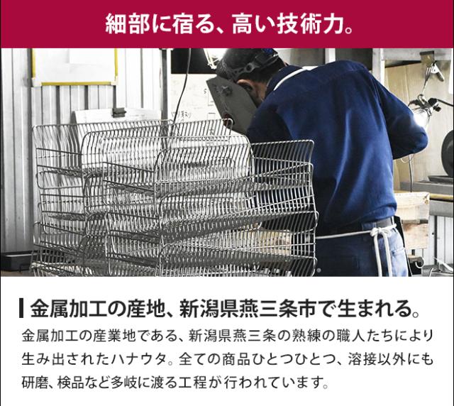| お手入れ方法 | ステンレス18-8は錆びにくい金属ですが、水分や汚れの付着等により錆びが発生する場合があります。汚れた場合は食器用洗剤で洗って水気をきれいに拭き取ってください。 ※タワシ・磨き粉などでこするとキズの原因となります。 ※本体の水・食塩水・漂白剤・洗浄液への浸け置きはお避けください。 ※シンナー・ベンジンなどの薬品の使用はお避けください。 |