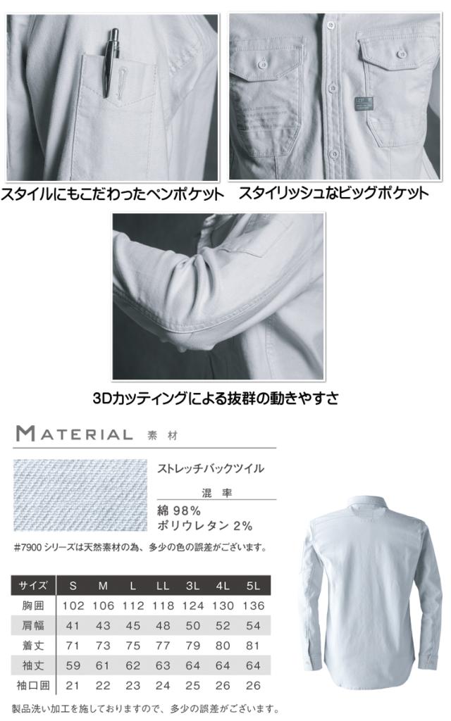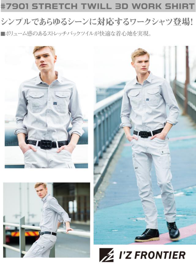 [即日発送][在庫限り]作業服 アイズフロンティア ストレッチ 3Dツイルワークシャツ 7901