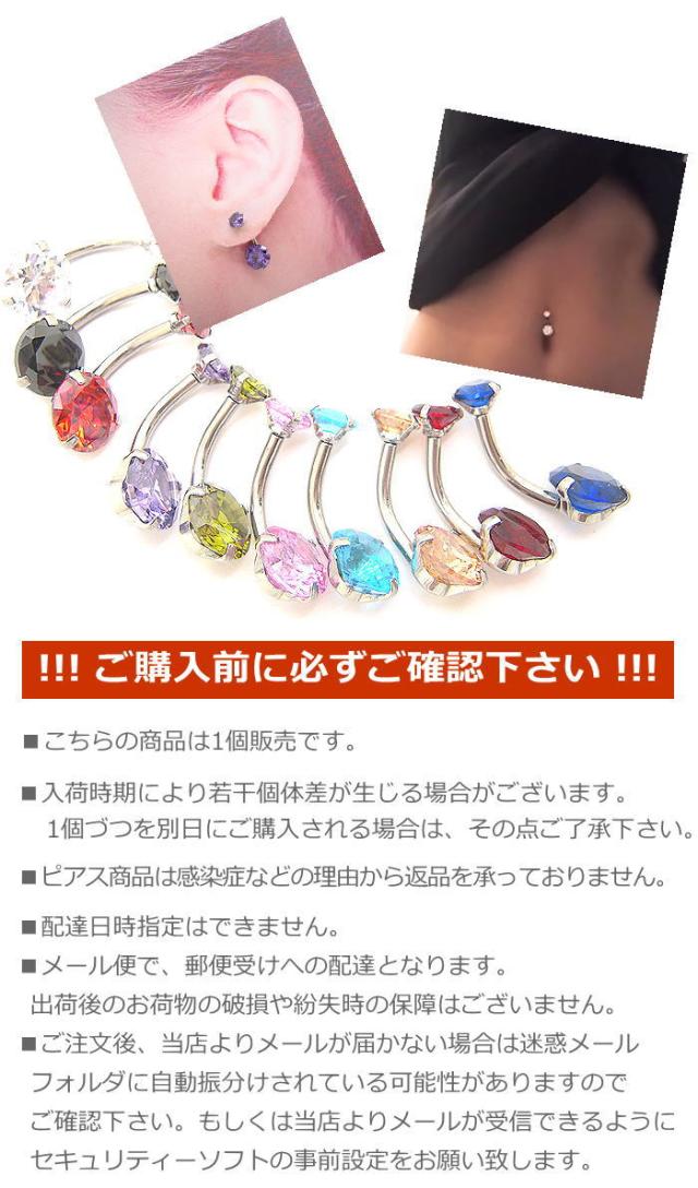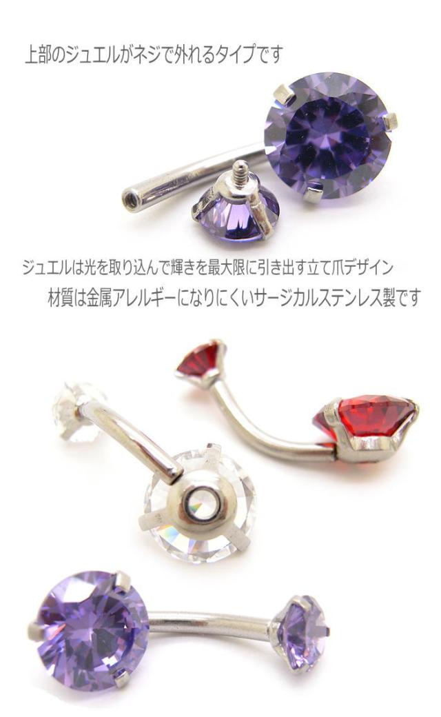 太さのサイズはへそピアスでよく使用される14Gで、装着は上部のジュエルがネジで外れるタイプです。