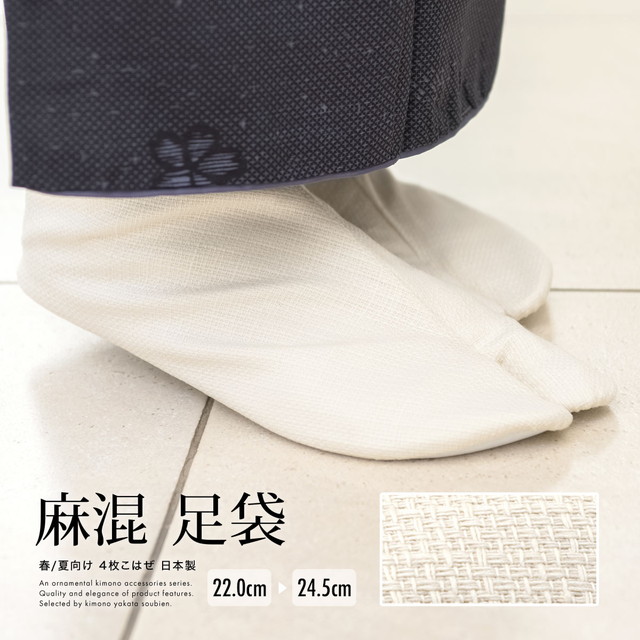 足袋 夏 麻 麻混 レディース 生成り アイボリー クリーム 四枚コハゼ 春 着物 カジュアル 和装小物 日本製【メール便対応】