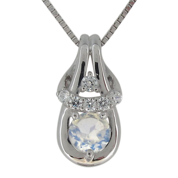 6月誕生石ロイヤルブルームーンストーンを使用したプラチナ製の、エレガントなデザインレディースネックレス(ペンダント)です。