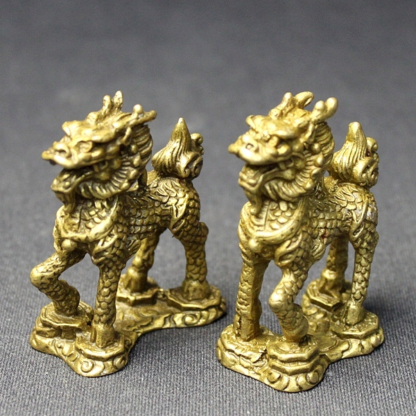 麒麟の置物 風水 玄関 風水グッズ 麒麟 キリン 置物 人間関係 効果 縁起物 置き場所 寝室 リビング 開運祈願 インテリア 飾り物 風水2026 (銅製八卦麒麟小一対) 送料無料