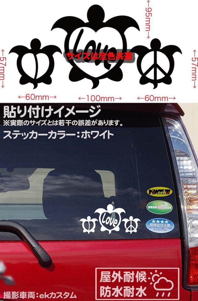 ハワイアン ハワイ ステッカー honu ( ホヌ ) Love 3 カッティングステッカー 全12色 サーフ 車 バイク かわいい おしゃれ 亀 カメ サーフィン リアガラス ヘルメット ホヌ ステッカー 防水 耐水 アウトドア デカール 転写シール 95mmX195mm