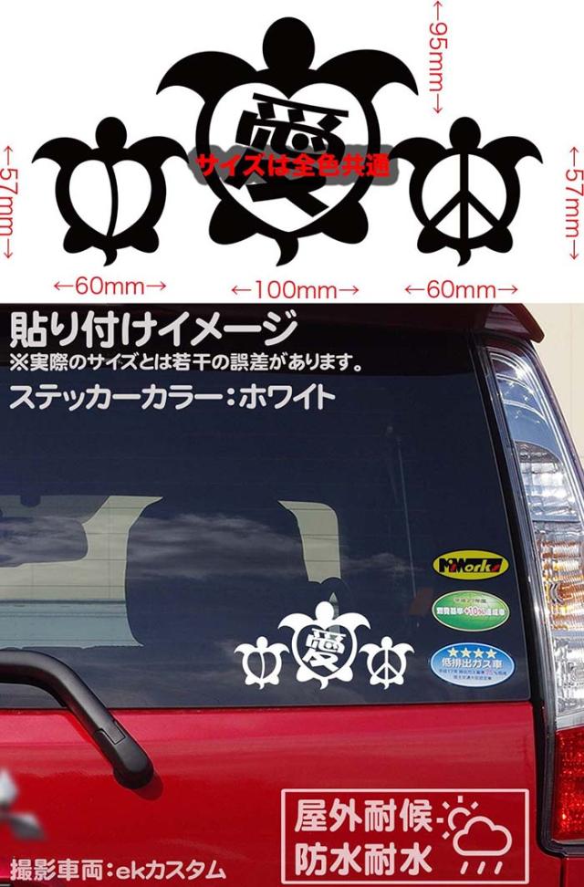 車ステッカー バイクステッカー カー用品 honu ( ホヌ ) 愛 4 カッティングステッカー 全12色 サーフィン 車 バイク かわいい おしゃれ 亀 カメ サーフ リアガラス ヘルメット ホヌ ステッカー 防水 耐水 アウトドア デカール 転写シール 95mmX195mm