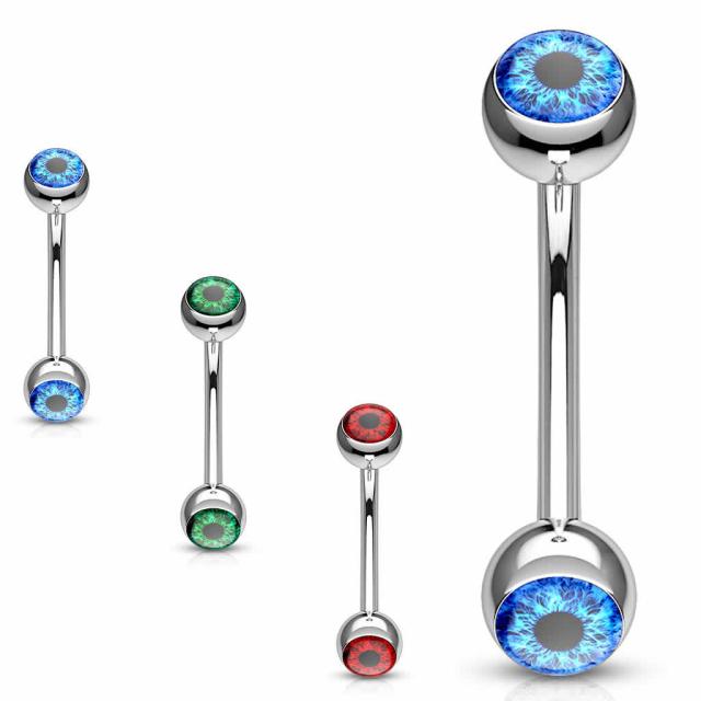 [ 16G 細い へそピアス ] デビルアイ カーブバーベル ボディピアス 16ゲージ おもしろ 面白い 臍ピアス ヘソピアス バナナバーベル カーブバーベル サージカルステンレス316L メンズ レディース アイブロー 眉 ボディーピアス 目玉 眼 ブルー グリーン レッド 赤色 青色 緑色