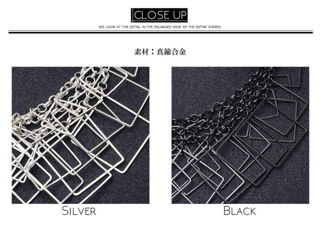SB select【シルバーバレットセレクト】より多重スクエアデザインネックレスが登場。大小大きさの違うスクエアモチーフが重なりあい胸元を華やかにボリュームのあるヴィジュアルに。